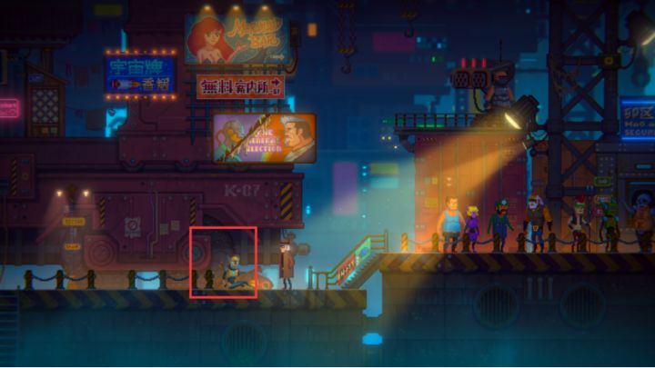 桥下区!线索汇集之地时间:2140年10月21日,星期五,下午一来到这里就看见两个小混混把一个机器人的手扯掉丢了,我们此时无法从右边进入桥下区,需要通行卡。我们和那个手被扯掉的机器人说话,答应帮这个机器人找回手,报酬是通行卡。顺着楼梯往下。下去后可以看到手臂挂在高处,够不到,先不急,我们跑到最右边,顺着网绳爬上去,获得【弹簧】。继续往上爬,拿到最上层的档案【镇暴型机器人Ⅱ型资料】,接着