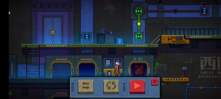 1.走过时钟,从左边的梯子下去。下来后拿到红圈里的【高能蓄电池】然后走到最右边调查时钟,发现我们需要打开时钟的控制板才能控制它。2.回到上面,往右走,找到工具台,准备合成工具。先把【头部坏掉的按摩棒】与【美容热熔枪头】融合,然后将得到的【缺电的切割器】与【高能蓄电池】融合,得到【切割器】。3.回到大时钟边,用切割器打开面板。4.打开电箱之后,又进入小游戏,就是旋转把光线打入两个按钮中。首先9