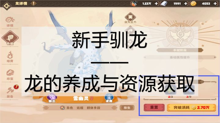 龙的养成 《驯龙高手:旅程》中龙的养成是游戏的主要玩法,也是重要的游戏体验部分。在推进主线、PVP以及PVE中发挥着至关重要的作用。 相信很多新手驯龙手们在开荒期都或多或少经历过卡关、卡等级等令人难受的体验。但只要了解资源获取方式并合理规划就可以帮大家解决不少困难。 本攻略仅针对萌新骑手们,熟悉游戏的后期玩家仅供参考。等级≥珍宝>装备,技能按需强化 龙的养成分为基础数值、等级、技能、