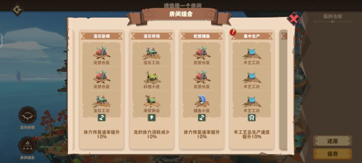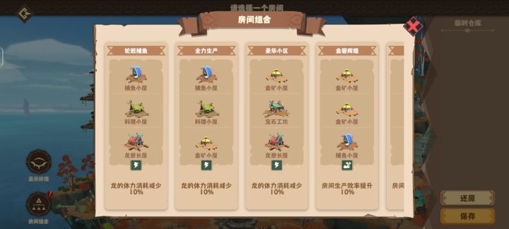 通过四次测试,个人总结出来的一点建筑组合,大家可以参考一下。在岛上还可以摆一些装饰性建筑,可以增加一些繁荣度。升级建筑需要的木头主线副本每一关每一颗星都可以获得一个木头,升级大厅需要的石头每一章第十关和第三十关可获得。
