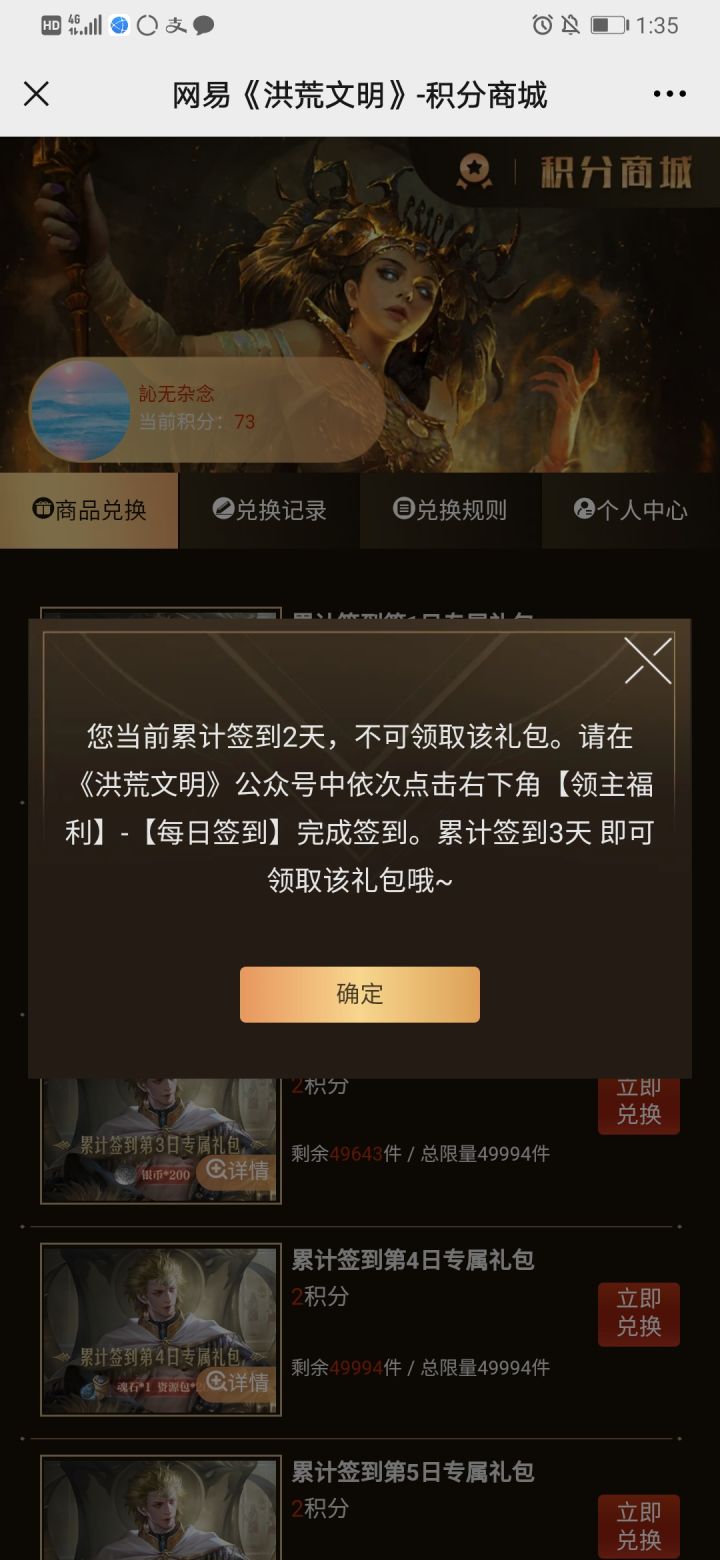 反馈bug 微信公众号签到3天的奖励我怎么领不了