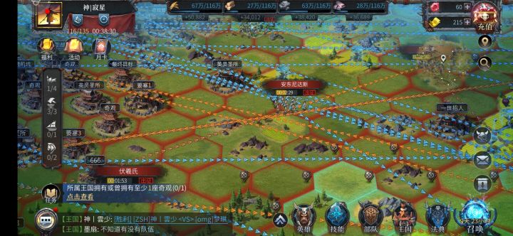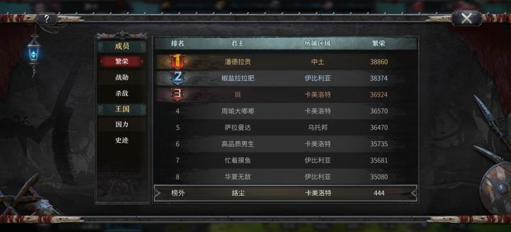 至8月17号晚上众神联盟自卫反击战结束并拿下中土英灵圣所奇观,中土“一世欢喜”国王魔导师、甘道夫隐退,疑是被卡美洛特的牧羽接手王国,并意图联合其他大陆的王国来抗击“众神联盟”王国,全区局势瞬间诡异混乱,波涛汹涌。