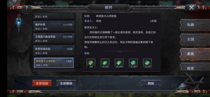 为了发展之前已被损耗的国力,全王国成员挺进资源州,打地发育,休养生息,但王国在休养的同时也不能放松对训练的松懈,根据战略决策中心的决定,由主力一团指挥司马老贼调动本团前往亚特兰蒂斯卡尔克萨4级遗迹进行攻城野战拉练,由主力二团指挥伪神调动本团前往不死域坦塔2级遗迹进行攻城野战拉练,并在8月18日晚上成功分批拿下.