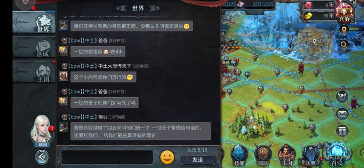 8月18号上午王国命令铺路大队长煌曦调动王国的总直属铺路大队进行全局铺路战略部署,计划以亚特兰蒂斯大陆为基础,布局势力向不死域左右两边延伸.此外,王国积极整顿全盟,清肃内鬼,查出并清退几余人,由后勤处加强对王国活跃考勤及攻城考勤的管理程度以及详细制定资源洲土地法等盟规.