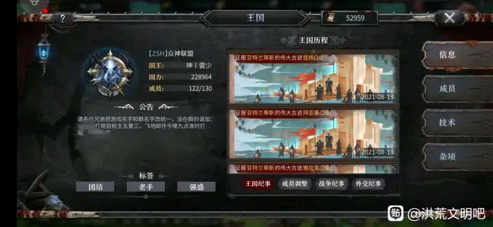 8月13号晚,王国指挥司马老贼和国王雲少再次提醒王国成员做好准备工作,避免出现战时问题,9点时分,攻击行动如期展开,由于先前已进行过守军战力的评估预测,遗迹毫无阻力地被我们众神联盟拿下来了,众人团结齐心,此时可喜也!( ˝ᗢ̈˝ )