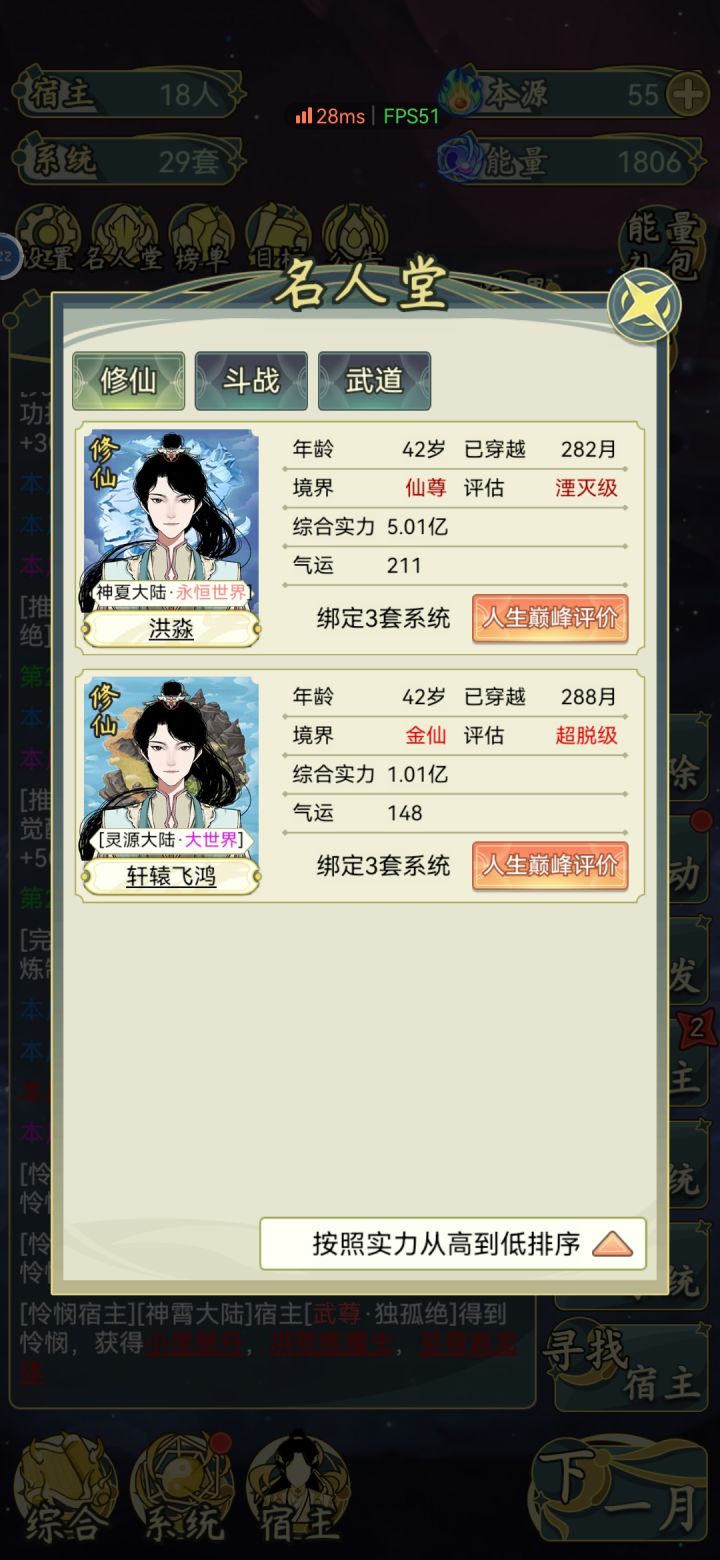 我觉得应该出个破开虚空,让小世界的可以晋升去大世界,这样符合修仙。另外去了名人堂的把我系统也带走了,能不能让他成为天道,帮我打打工啊,有的重复操作我懒得点。。。