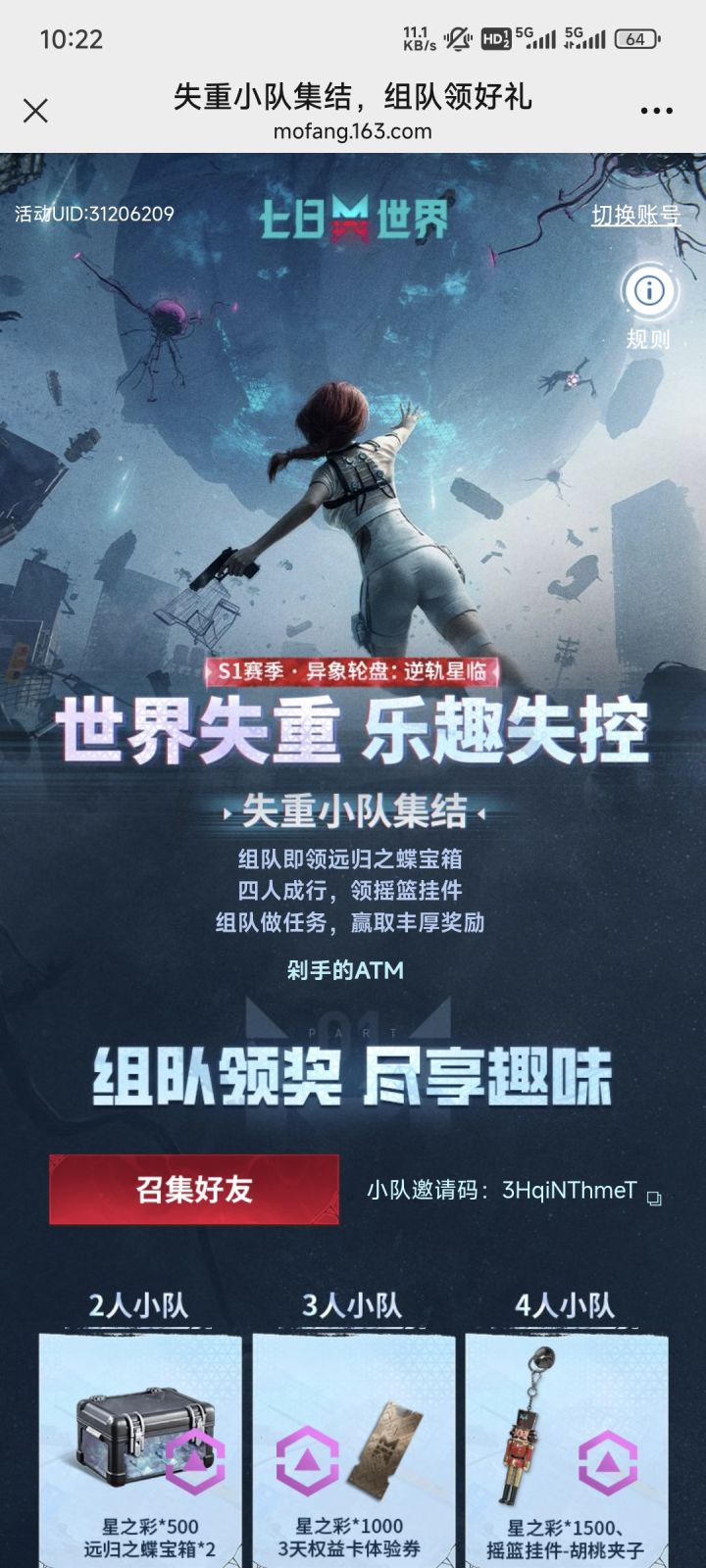 失重小队组队大量奖励