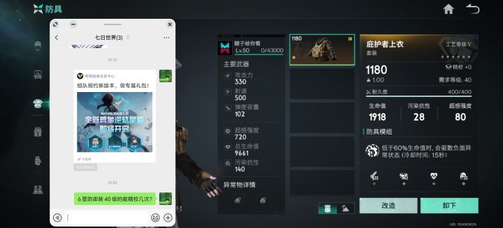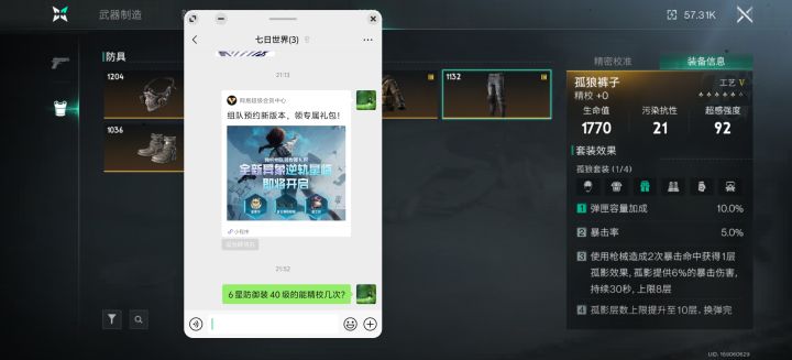 有没有人碰到这个问题?明明防具已经全部6星了 也造出来了 身上只有这一套装备 所以不存在选错了 但是6星防御装在精校界面看到的是5星防装#七日世界 #七日世界问题反馈