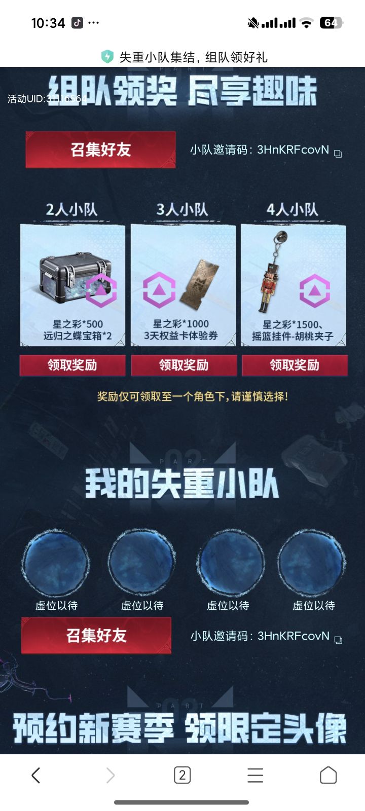 小队邀请码:3HnKRFcovN