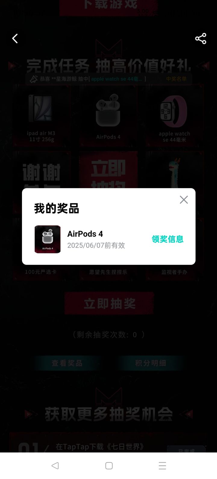 #七日世界 请问4月23日到5月31日的抽奖,实物奖品什么时候发货?为什么还没有消息啊。还联系不到客服