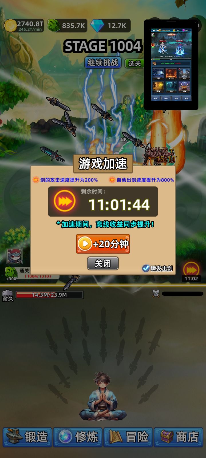 开局先把兑换码用了和看广告,能力钻石把放置奖励优先点满,次点挂机时长;能力金币加成主点,次点点矿物加成礼包码: zjxzlj123 ,zjxzlj456 ,zjxzlj2023 ,VIP666,VIP888,VIP999,SorryAd,HAPPY 养剑方面,先养2只剑一个主升,出ss宠后养多只剑升到11级刷s词条(跟你的ss宠相关词条)双倍奖励要看,(每天30个广告看完自动跳过),有空就挖