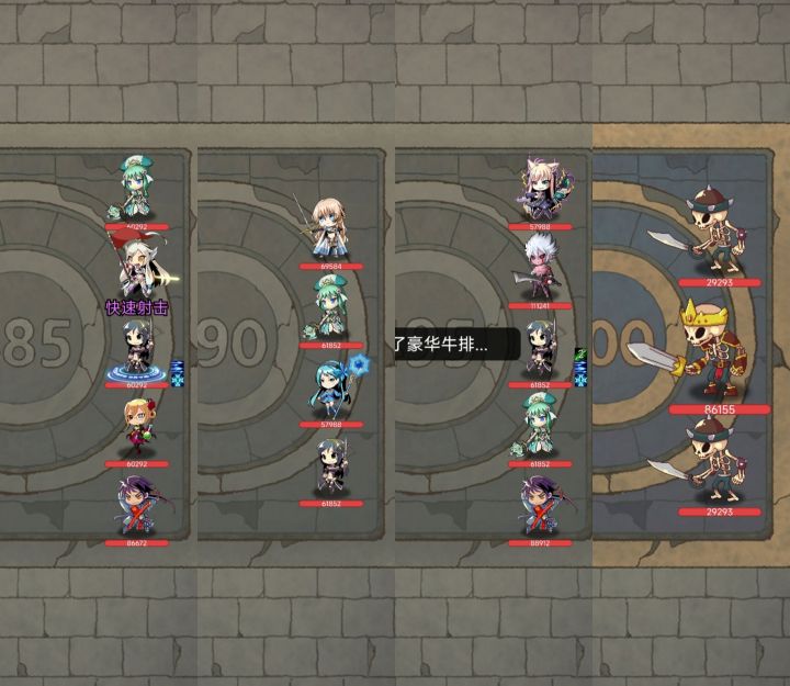 该篇主要续写一些400+层的小点,有需要的可以瞅瞅要点一:打难关,建议开2倍速,避免过快的暴毙,过慢的专注力疲劳要点二:学会记忆、预测双方各单位行动次序,以合理嗑药等(能治疗就等技能回血,避免浪费)要点三:通过不断的尝试,熟悉塔对面的主要威胁形式,有准备,能预判,打必过情景1.狂战,刺客+3人组(默认速度刺客>狂战)典型的高攻组合:①低配版——每回