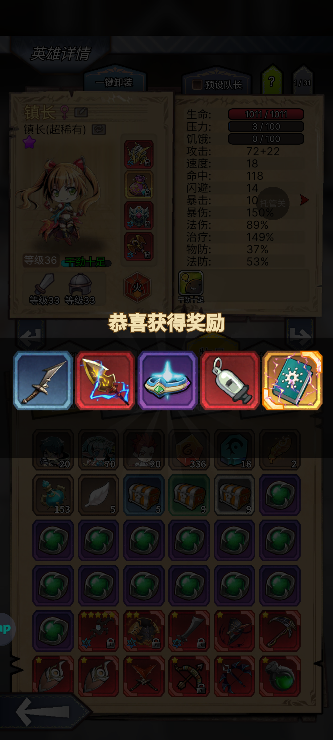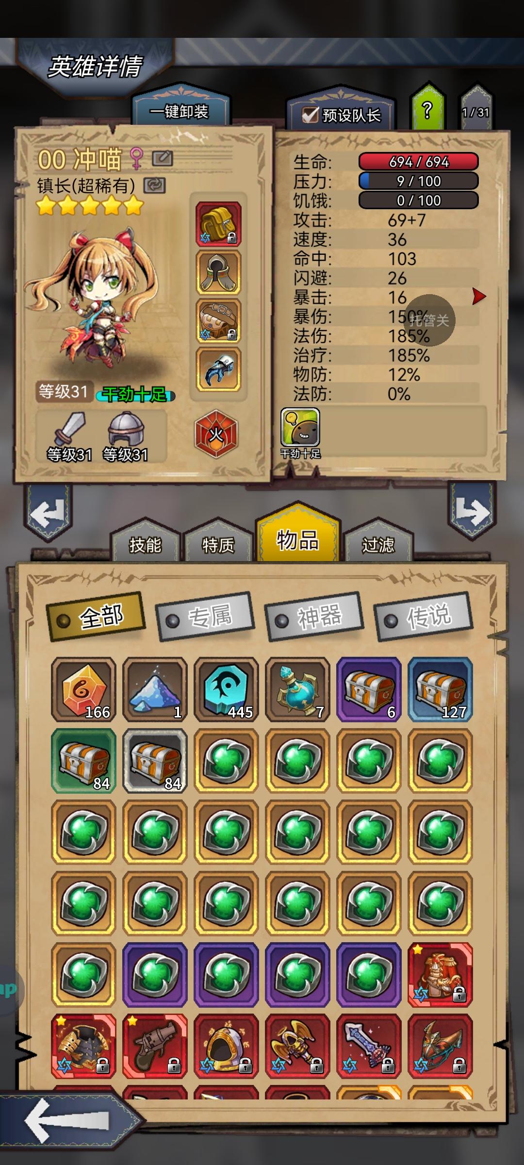 玩了67天。玩游戏的时间实在不多,购买过8倍速,其余的没有投资过。白嫖为主!难度21,boss确实有点打不过,我火镇长扛不住光剑魔剑的组合。再沉淀沉淀词条把。本人地牢党,每天地牢25次扫荡完,但是体力不一定用完的咸鱼。抽佣兵比较坑,实用的都压底了。。前面缺佣兵,狂战士。目前没有富豪,黑骑。专属坑的我不要不要的!!前面五星火女等专属等了二个月,还好有前面活动的自选专属箱子,凑了最后一把土法专