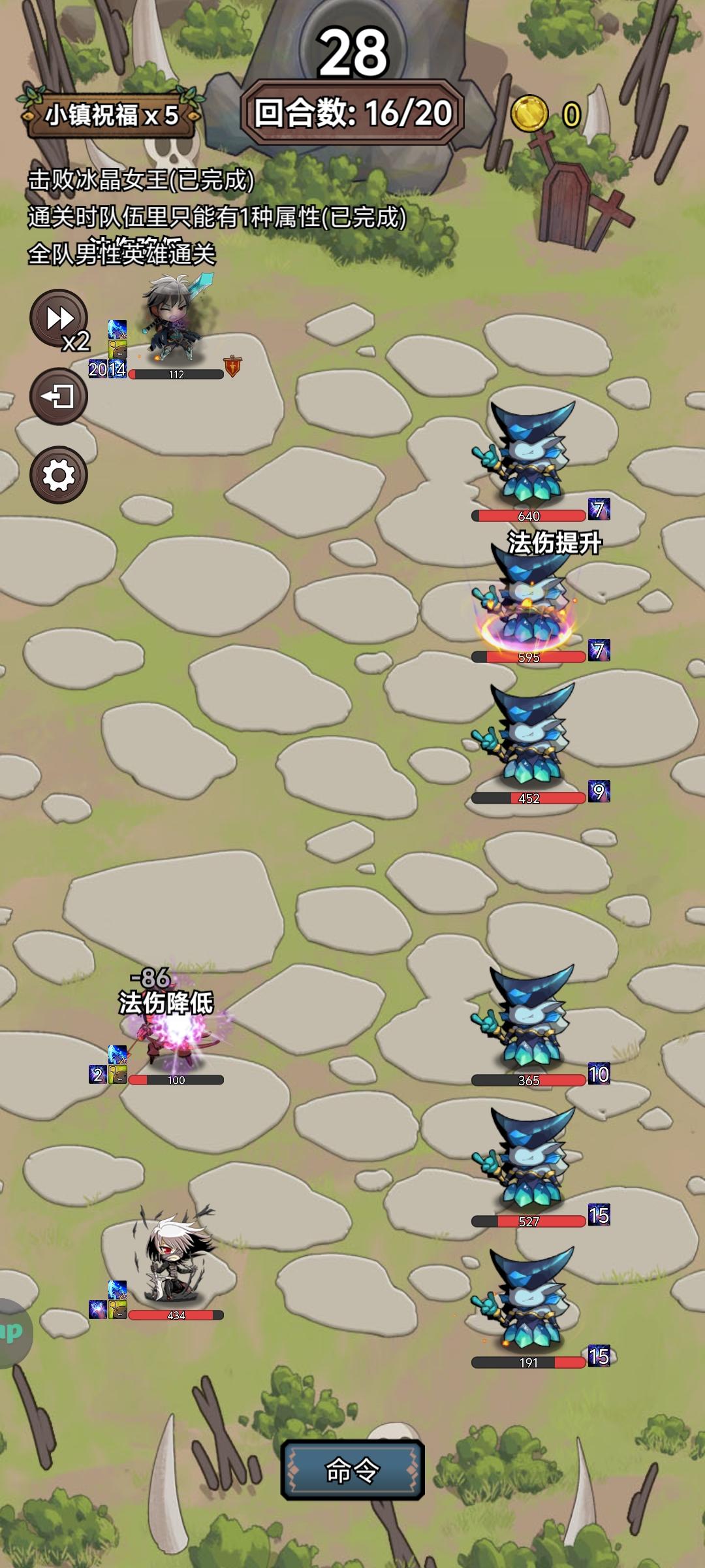 (普通)说说打法,前面找到灵媒/猎人作为主力输出,然后再找到医生作为第二个boss对策。然后2个人可以一直挂机到第二个boss。中间可以拿一些装备。到最终boss无面人前面,需要一定的金币,卖掉所有角色,找到猎魔人、神官,两个都拉到四星,我是有反击刀,然后猎魔人天赋洗了持续伤害+1回合的天赋。神官技能随便boss复制,无所谓的。感觉其实猎魔人单打会更好。我准备了12个药,反正半血就补一下,防御够
