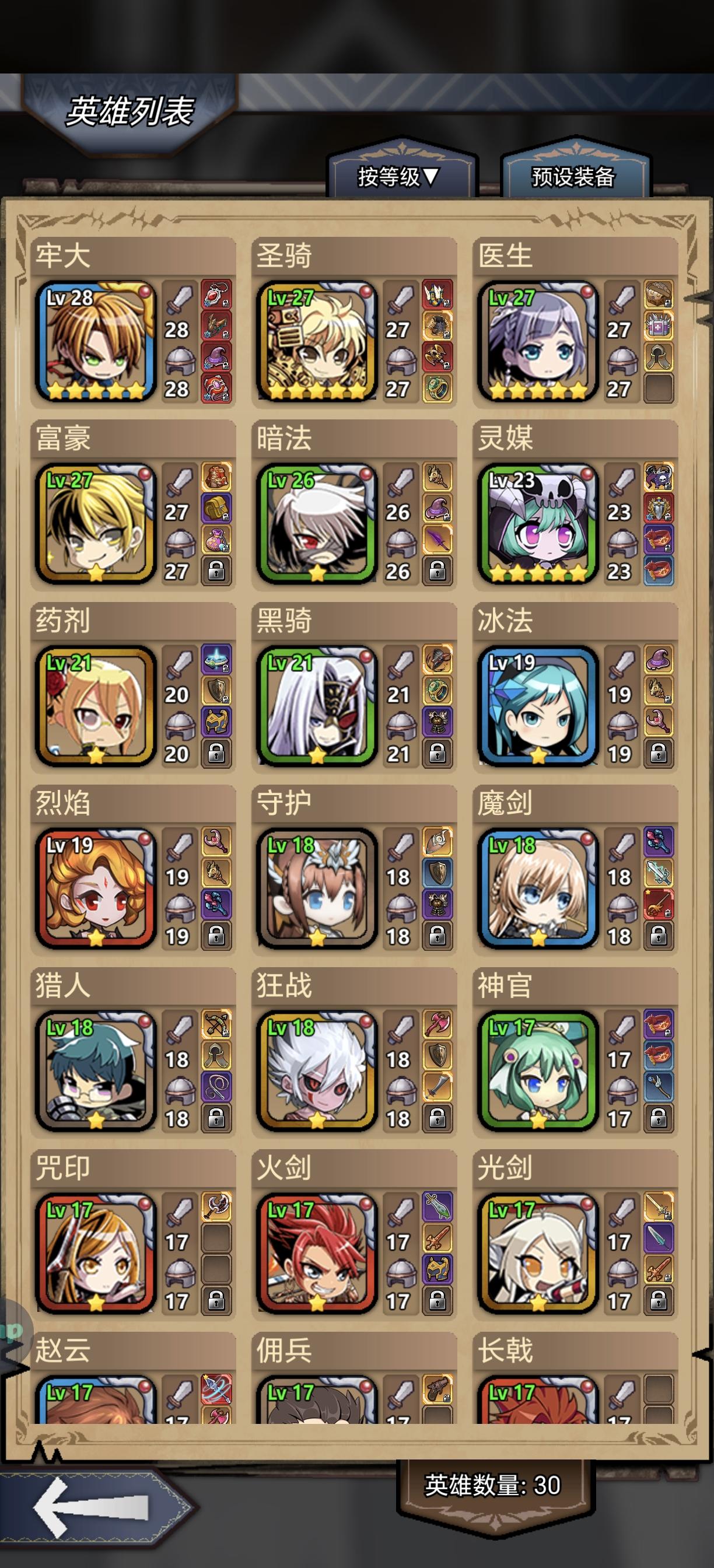现在光剑已经五星了,其他的还有圣骑和灵媒镇长五星,下一个想搞魔剑或者医生,不知道哪个好,好纠结。