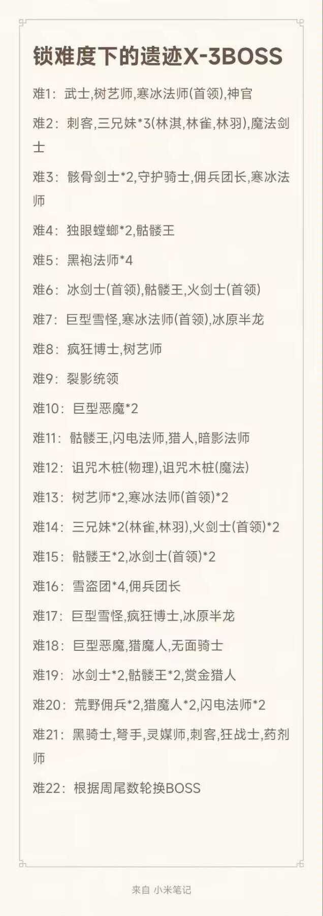 遗迹Boss名录
