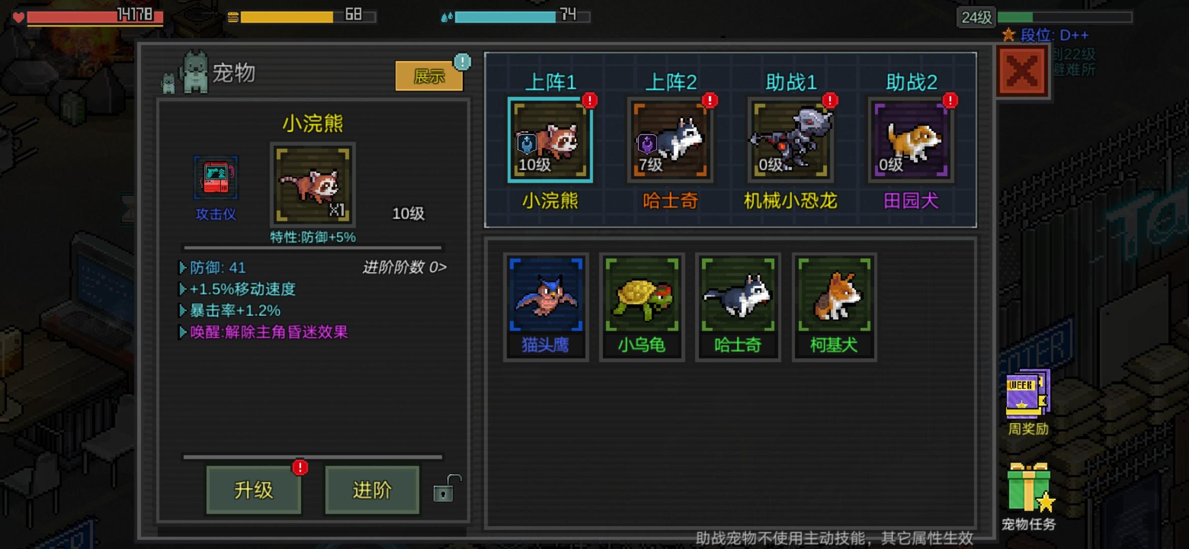 20分钟第一章总算是通关了😂说说感受吧:目前为止给我的感觉就是一个打怪升级的游戏,不得不说,这打击感和爆出来的东西真的很爽,特别是把boss打si后,真是有一股快感。然后说里面的东西:“雨水”好像很鸡肋啊,虽然能补充水分但是还要减少四分之一的生命值。还有我一元钱买了个宠物熊猫,好像也没有什么用,纯粹好看。“激光剑”是个好东西,给你体验一下就又要骗氪了,6元钱,也不是太贵,但我盲猜后期基本放仓库