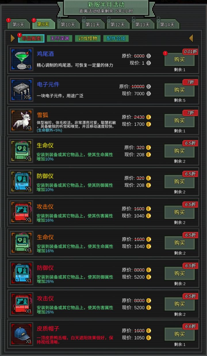 珍品贩卖 无尽深渊 讨伐怪物 配件合成