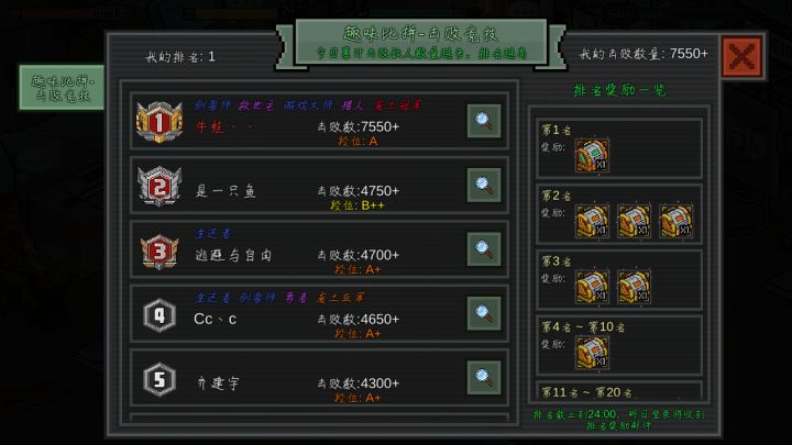 这个帖子讲讲每天的竞技活动,去怎么做,怎么去走捷径,怎么掉战力去分组。先说说都有哪些竞技,第一类枪械,近战,狩猎,一次持续两天,10个人分一个小组,两天的积分加起来然后排名,这个比的是硬实力,但也是有技巧的,如果自己和排行榜前几一组,肯定拿不到好名次,反观,和低战力的一组,那很容易拿第一,我就讲讲怎么和低战力分一组。分组有的人说是按最高战力分,有的人说按当前战力分,我更偏向于当前战力,因为上周的