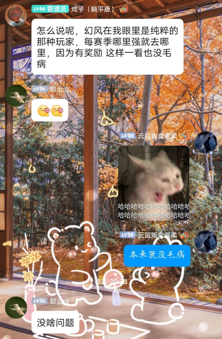 说给山河的宝听的哈 第一 那个聊天记录是他撅完你之后的聊天记录第二 我们知道群里有内鬼 随便说的 我风他没毛病 就是为了领奖励第三 说我们带节奏的 我们昨天打完城人就是吃瓜 说白了山河骂的也没问题