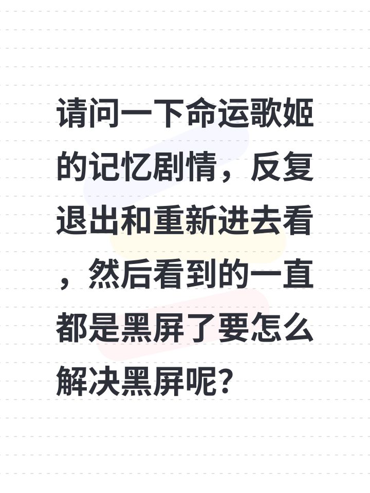 请问一下命运歌姬的记忆剧情,反复退出和重新进去看,然后看到的一直都是黑屏了要怎么解决黑屏问题呢?