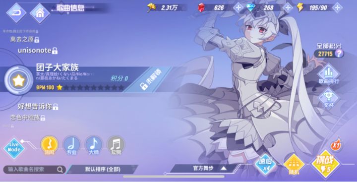 《命运歌姬》作为一款ACG物语音游,拥有庞大的超人气ACG歌曲曲库。但是游戏内默认解锁的歌曲只有5首,其余很多诸如“Lamb”“星期五的早安”等八十多首歌曲还需要解锁之后才可以体验噢。在“演出”界面,左侧的歌曲列表里,我们会看到一些标记着“未解锁”的歌曲。这时候我们就需要使用一种道具才解锁歌曲。需要用到的就是这个“谐音之扉”道具啦,它可以用来解锁所有的曲目。“休闲”难度的歌曲需要使用30个谐