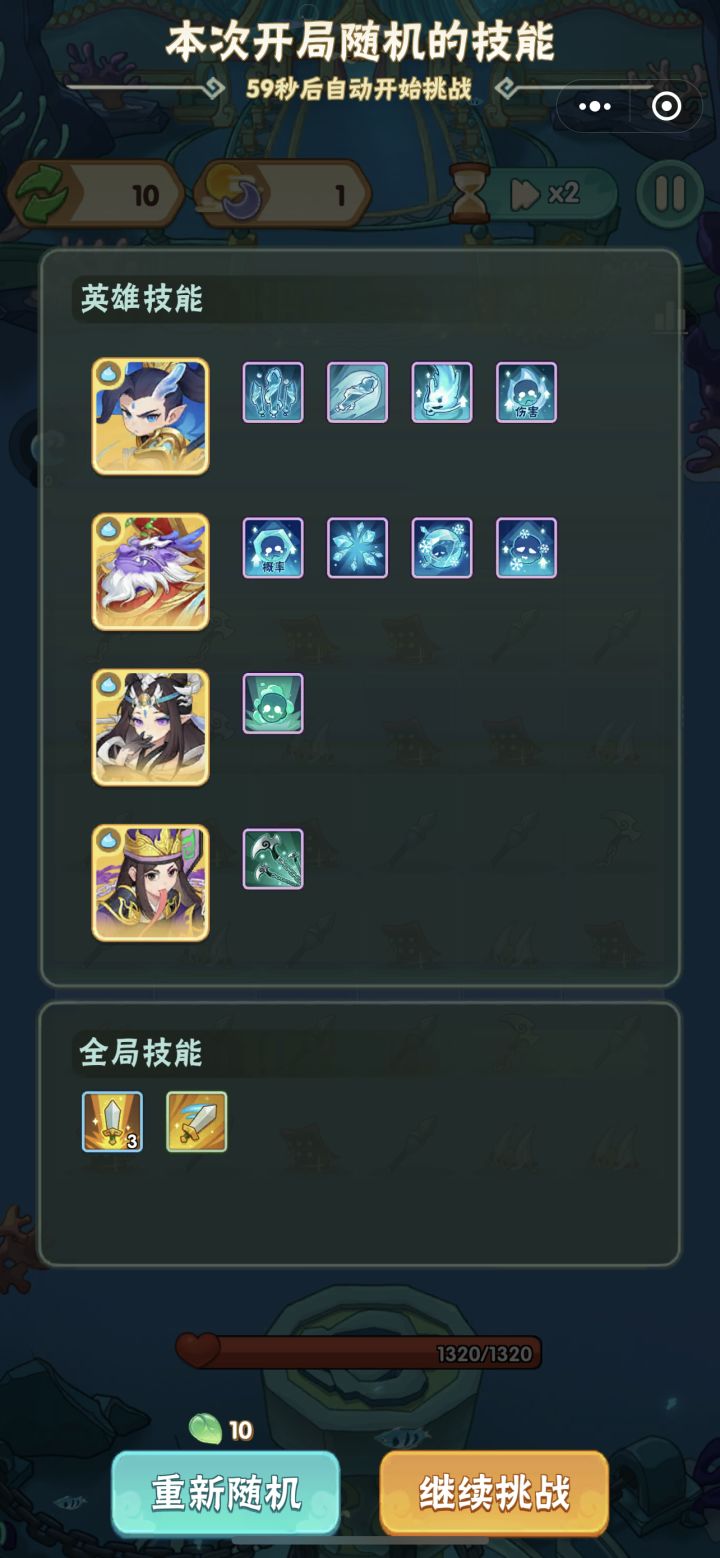 建议选择敖丙+龙王,敖丙主要输出,龙王打控制,敖丙升满级,这样输出能力就有了,龙王可以减速控制,另外两个英雄直接一级就行了,这样不占用,游戏初始技能格子,可以加攻击力或者攻速,攻击力和攻速分别有3-6-10,如果刷的3的比较多,可以重新进几次,尽可能的多刷6%和10%,轻松拿捏,里面把主要输出放到第一排,尽可能合成敖丙,水关卡,每过一天,可以降低敌人移动速度15%不增加步数的情况,最多4