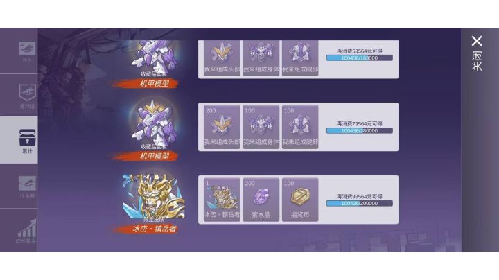 首先是一些线上模式必氪的东西,不氪你玩不下去的,如果你是玩了一俩月的玩家可以直接跳到最后面去看。1 永久卡和月卡(328+68)2 周通行证和月通行证(128+98)3 成长基金 98以上的98的周通行证,月卡以及月通行证如果你都想一直买且不被劝退的话,就可以开始接着吃史了。首先把代金券这五个档位全部拉满代金券是可以直接当钱花的,买代金券是为了他附赠的钻石,每天钻石商店只买银箔和紫水晶