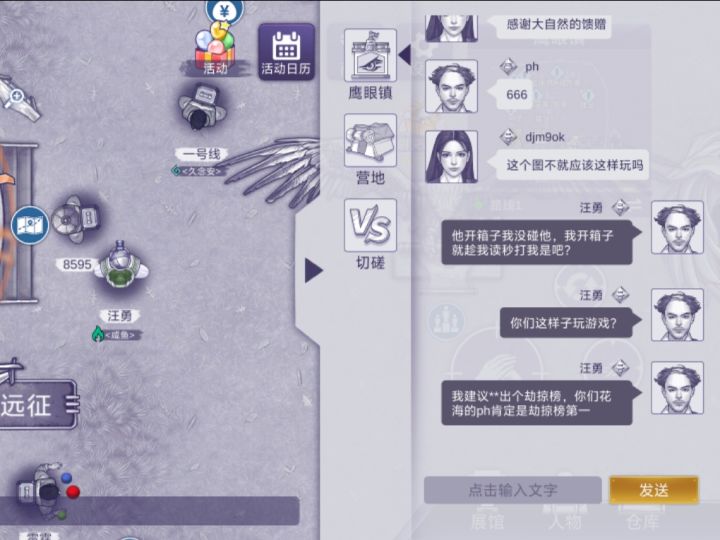 电玩城副本,来自花海家园的ph大佬在10分钟第一轮空投落地时进入游戏,在11分左右我有幸路过看见他正在捡空投箱。或许是因为我没有说“新年快乐,祝你马到成功,好运常伴。”让ph大佬感觉受到了轻视。于是尾随我到下一个空投箱,第12分钟趁我开箱子的时候ph大佬怒而开枪,成功斩下我这个小卡拉米。并且ph大佬在此轮游戏结束后于鹰眼镇频道公开称赞“666”,还有djm9ok大佬(也是花海的)回复“这个图不就应