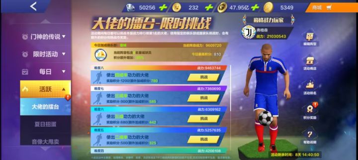 老六,现在的大佬都是11传说,卡战力高,品质也高,强度也够,然后在大佬的擂台中,这种活动对于其他玩家就不是很友好了,战力高个三四百万也要打几十次,还不一定过;别说低战玩家了,完全打不过啊,天天要打几十次,然后奖励也不是很好,属于食之无味弃之可惜的状态,能不能优化一下?比如出个租借上阵帮打功能啊?#全民冠军足球