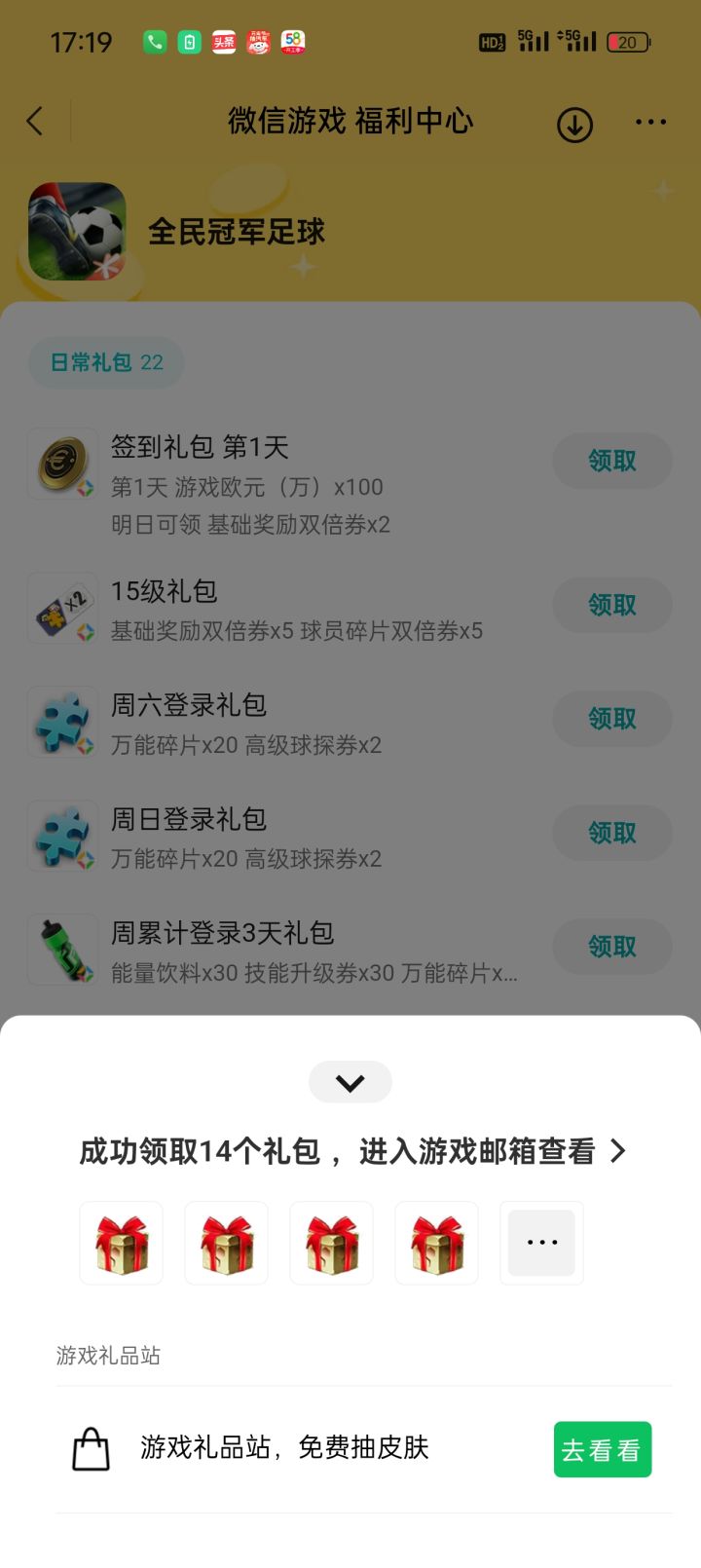 微信礼包可以领,进游戏没有,呵呵。