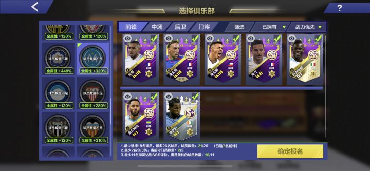 球员数量够了,也可以报名,但是队伍图标显示球员数量不足