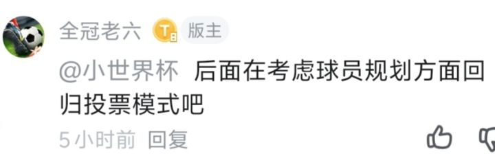 我觉得这是正确的做法。1.策划规划球员卡牌费心费力。设计好的卡牌放出来了,玩家又不买账,还不如让自己队的球迷自己投票。2.最好还是用去年那个按头号球迷里的俱乐部积分来决定票数的方法,避免“外人”乱刷票。至于说小号的影响力,从去年投票的情况看,微乎其微。这种投票模式最好也引用到联赛冠军投票、欧冠冠军投票、赢家投票等上面。虽然今年皇马已经出局了,但是去年欧冠夺冠加强德拜,真的非常恶心,不希望今年夺