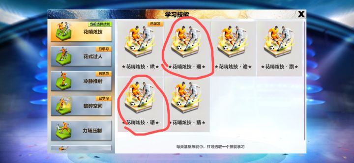 花哨炫技这两个技能名称是不是写错了一个?