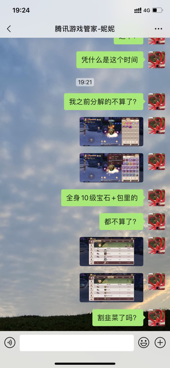 txgj-nni妮妮微信号微信小程序全国12315举报,实名注册,微信账单,支付宝账单举报,三种形式,齐心协力举报侍魂胧月传说手游欺骗消费者,不给通知更改游戏内容,随意变更消费者已消费产品。1.不给通知就发宝石礼包,欺骗消费者2.分解天空套给宝石精华,又出来新宝石,还得分解天空。这是随意变更消费者消费产品。3.策划不给解释,也没有相应补偿,又出充值回馈。这是赤裸裸圈钱。4.坚决抵制这种