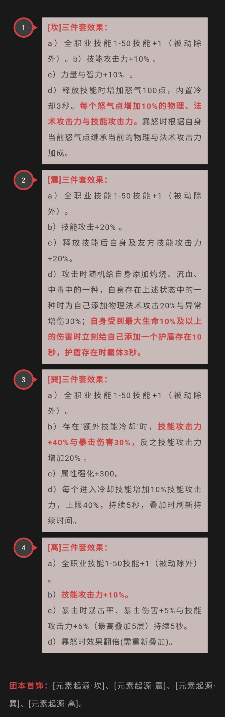 说一下自己的想法,不一定对,大家一起讨论,不喜勿喷。先上图个人觉得,这四套首饰的设计初衷是四套防具的延伸版,对应分别是 黄昏坎 晨曦震 宿命巽 黑夜离,也就是有共同性质属性,至于选择搭配你是走极端强化还是搭配互补看个人选择,比如以我的职业天诛为例,前期黑夜搭配震的霸体护盾容错率是个不错的选择,白图选择晨曦离可以最大化输出,当然这只是原生套装,最终形态我预测是防具首饰统一属性,极首饰加入对应的防具