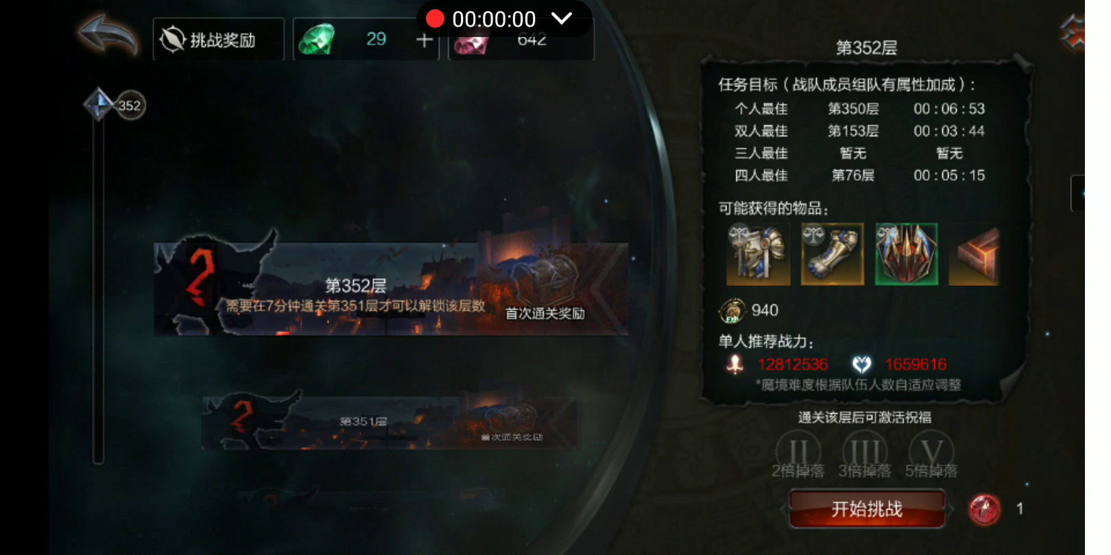 351需求战力是350的2倍352需求战力是350的4倍这尼玛是外挂都打不过,一个黄色精英比351层boss的血还厚。