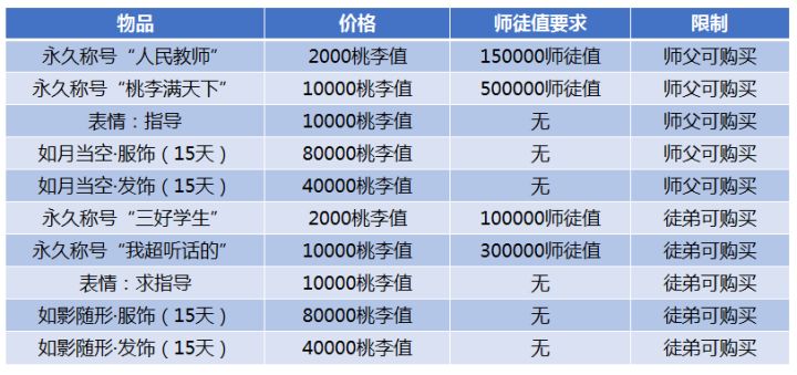 师徒系统已经上线多日了,相信很多斗者已经在师父的帮助下顺利出师。在完成师徒任务的过程中,不仅加深了对游戏的认识,还获得了师徒值与桃李值。究竟该如何合理的使用桃李值呢?今天就带大家来看看师徒商店里的小窍门。小窍门1:永久称号必须要买,可以增加属性和斗气。在师徒商店中,有些物品只能师父购买,有些物品则只能徒弟购买。“桃李满天下”与“我超听话的”这两个称号可以永久增加属性和斗气值。小窍门2:等师徒
