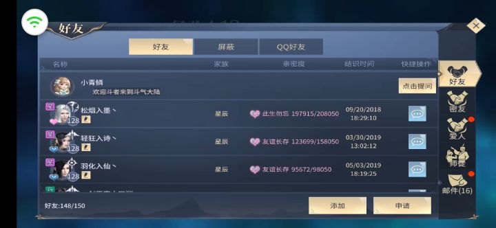 挂火150,斗气秘境100,魔兽悬赏:50,跑商:50,答题:12或结婚日常:10,药老:100,动作:20,boss:40补充:结婚周任务:50;斗气秘境一次+10,但为什么可以刷100呢,主要我闲的无聊反复刷;魔兽悬赏每次+5;跑商协助+10,紫色道具+10,蓝色道具+5,互帮上限是40亲密度,也就是两个人求助并帮助两紫四蓝即可(切记要和家族成员商量好哦);药老一次是+5;生死门是和药老是通