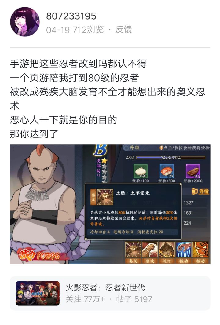 手游把这些忍者改到吗都认不得一个页游陪我打到80级的忍者被改成残疾大脑发育不全才能想出来的奥义忍术恶心人一下就是你的目的那你达到了