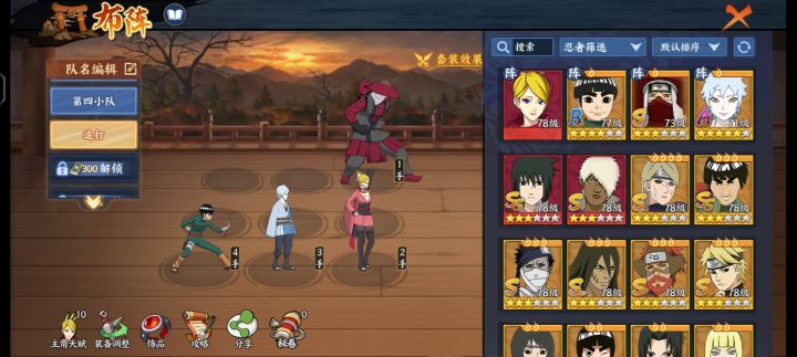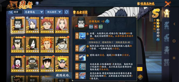 自从鬼鲛和蝎加强后,就想着能不能用一用然后小南出来了,被动还可以互叠,配上查克拉套和风主完美契合鬼鲛被动也就是说咱查克拉回复快,还不用愁用光因为小南被动配上查克拉套可以把大招消耗降为零这个阵容第二回合查克拉就100了,全队增强100%的体术伤害套路如下需要忍者:风主鬼鲛小南蝎需要饰品:清风一套,查克拉两套,负重一套风主选分身普攻和追打回蓝蝎和小南用查克拉套鬼鲛负重抗打或查克拉套