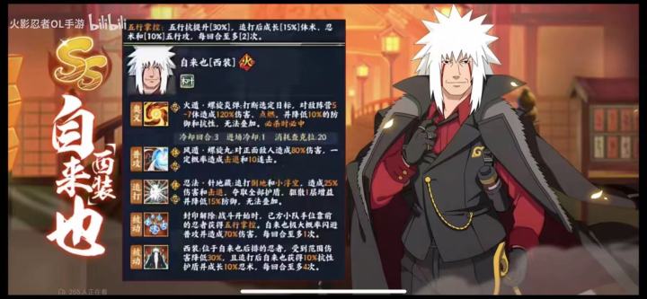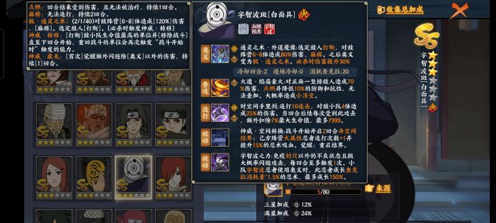 奥义普攻追打都不用看,中规中矩,值钱的就是两个被动,个人认为第一个给手位靠前增益的只有白面具(不排除布鲁是专门为白面具设计的一个远征忍者),后排减伤,不太清楚是什么伤害来源可以有效?如果范围性奥义,普攻,追打以及豆豆被动都有效,那属实有点变态(这个正式上线应该会改)。最终阵容应该就是白面具九宫格三号位,自来也六号位,火主和鼬和自来也并排放。