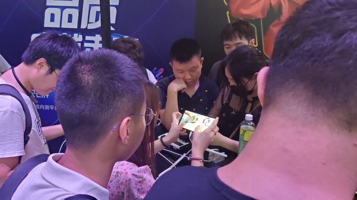 各位冒险家久 等 了 !ChinaJoy终于拉下了帷幕在展会上和大家面基真开心!大鹅迫不及待地从CJ现场飞回了星球想要跟各位冒险家分享一下现场的盛况大家快跟大鹅一起康康前方有哪些有趣的见闻!展台氛围<人气火爆的展台><科技感十足的海报>大鹅初到展台便被那迷离的灯光给裹挟住了那灯光仿佛在与科技感十足的海报遥相呼应也为我们下面科幻般的盛况打下了铺垫说人话这个新游区展