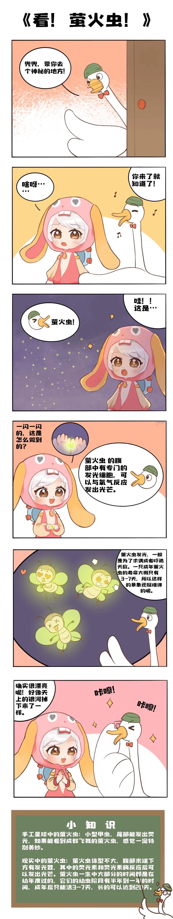 前阵子,鹅远远看着小树林总觉得那里在发光诶!就在昨天,鹅终于鼓起勇气去一探究竟了!!结果发现,树林里竟然……!萤火虫是很难遇见的昆虫它们真的非常美丽就像银河落在了陆地上一样如果有机会的话冒险家们也和大鹅一起去看萤火虫吧!那么本期的话题是:你见过最美丽的景象是什么?在留言区告诉大鹅吧!上期精选留言上期话题:你喜欢怎么吃蜂蜜?精选留言:用户ID:蓉*留言:每天早上起来用蜂