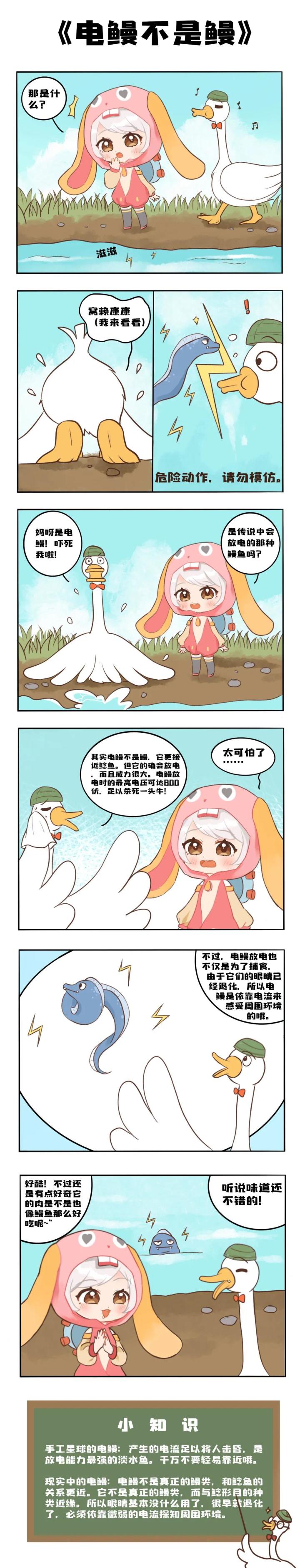 正逢节假日想着和兜兜去公园走走来到了河边我们突然听见河里有电流的声音!究竟是什么在河里……没错,电鳗不是鳗鱼哦!电鳗生活在浑浊的河流中所以身体颜色不那么鲜艳它们的眼睛也退化了电鳗放电,不仅仅是为了捕食它们还用电流来探测周围的事物冒险家们还知道哪些会“特异功能”的动物吗?比如蝙蝠会使用超声波……在评论区告诉大鹅吧~更多精彩内容尽在TapTap手工星球交流群(7218677