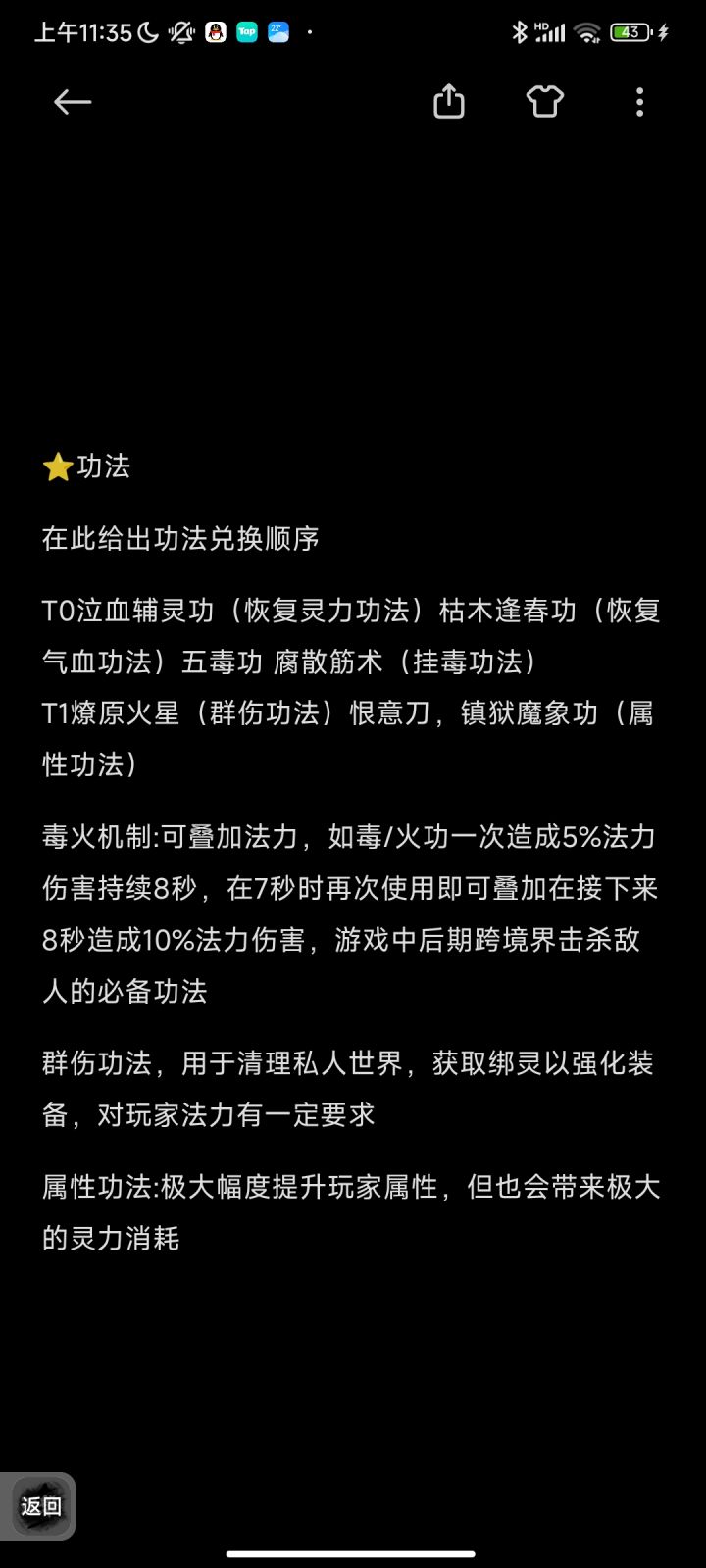 大家好,我是梦求真。最近看到很多小伙伴说功法没有介绍,不知道换什么。所以我略微整理了下功法,总共分单体攻击、持续攻击、多段攻击、群体攻击、法力buff、肉身buff、护盾buff、身法buff、回血buff以及特殊功法总共10大类。大家可以根据自己的喜好去藏经阁或者仙宝阁兑换。Tips:5⭐功法:山崩拳。性价比之王,练到后期更是只要10灵力就可以释放。5⭐功法:血煞功。全游戏唯一无上限加属性功法,