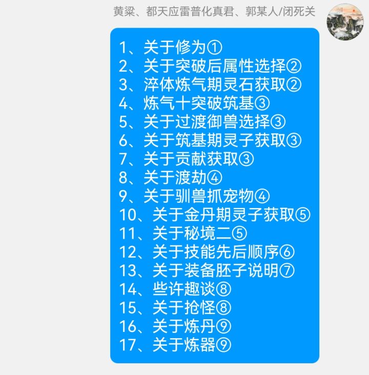 本攻略内所有物价、物品价值均基于三区,内容均为主观建议,仅供新手参考,攻略会持续修改 修仙核心目标始终是提升修为,因此本攻略将按修为等级逐步指引。本攻略为长篇系列攻略,会持续更新,新内容将发布在本账号,可前往主页查看。游玩期间若遇问题,可通过以下两种方式求助: 1. 加入攻略专属群(群码见文章末尾)咨询;2. 游戏内世界频道直接喊话,联系以下玩家(⭐为重点标记,优先对接):- ⭐ID: