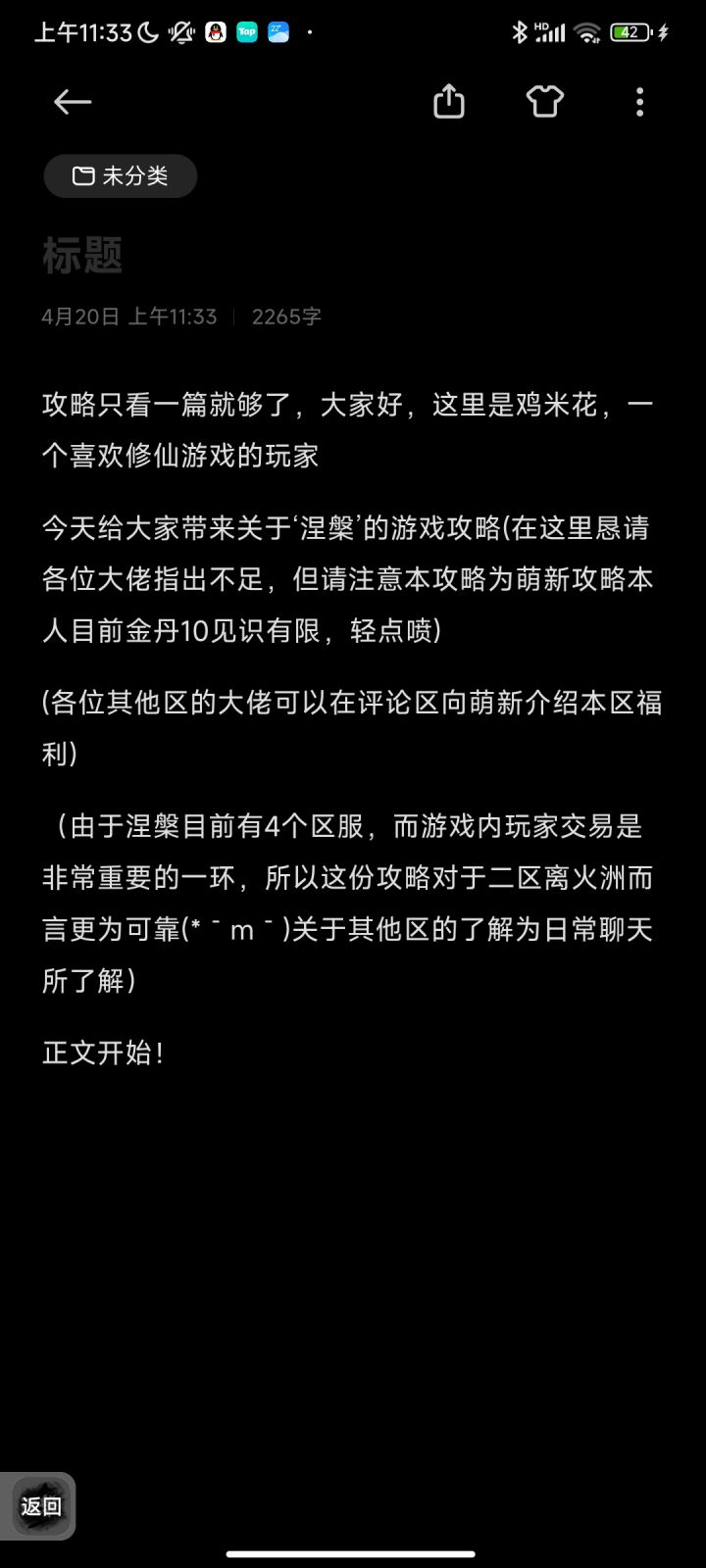 涅槃萌新攻略(金丹修士著)欢迎大佬参加修订
