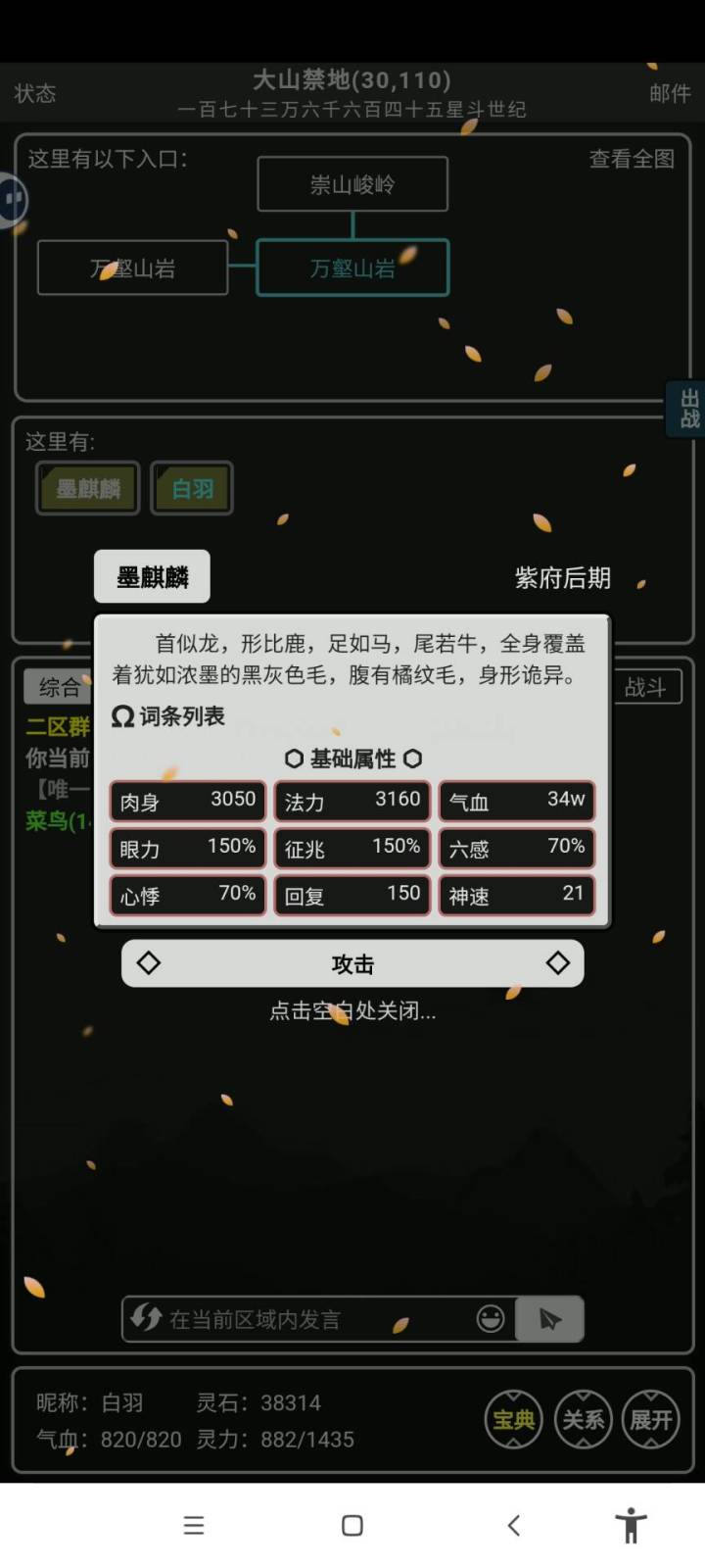 新人建议选二区,二区的秩序好,大家不抢怪不打人。二区还有以下组织可以加入。①昆仑道观。这里主打师徒关系,道友间关系密切,所以会有老登免费送资源。不介意上面有师傅的话,建议优先选。②洛神宗。这里主打交易,进去可以拿资源换资源,没有免费送,但总比外面买便宜。进去就是挂名,没人任你当徒弟,你头上没人。③散修联盟。这里纯自力更生的散修。以前有老登送资源扶持新