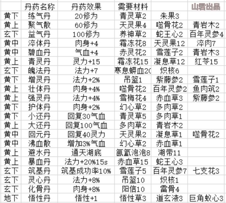 淬体不写了炼气一1200二1320三1452四1597五1916六2017七2318八2550九2805十3085筑基一?二?三5332四6398五7678六9213七11056八13260九15921十19105金丹一22927二27521三33014四39617五47541六?七?八82151九98581十118298